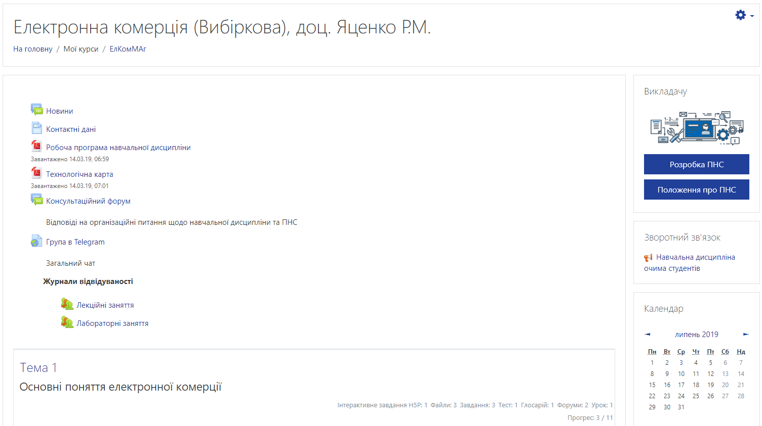 Мережеве інформаційне середовище навчальної дисципліни, яке здійснює опосередковану взаємодію віддалених один від одного учасників навчального процесу, ефективну організацію навчального процесу та управління самостійною роботою студентів